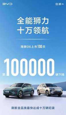 百日十万辆!比亚迪海狮06刷新全品类销量破十万最快纪录