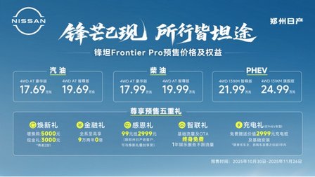 从预售价来看,郑州日产确实拿出了诚意:锋坦Frontier Pro预售价格17.69万-19.99万元,而插电混动版的锋坦Frontier Pro PHEV预售价格21.99万-24.99万元。这个价格区间,正好契合了20万左右预算消费者的期待。