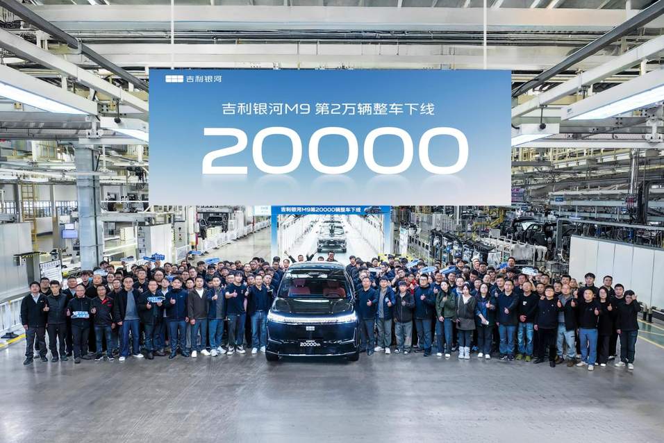 近日,吉利银河M9于杭州钱塘智造基地迎来第20000辆量产车正式下线。