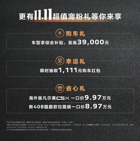 此次发动机终身质保政策的推出,不仅是神龙汽车对“良心车”品质底气的又一次证明,更是其面向未来、与用户建立终身信赖关系的战略举措。金秋11月,神龙汽车的品牌活力将持续迸发。不仅有“法式驾控体验季-赛道体验”等热血赛道活动,还将在“双十一”期间,通过“双11直播购”的直播专场,限时抽取购车抵扣券等福利,为用户带来极具吸引力的福利,让东风雪铁龙和东风标致的产品魅力,转化为用户触手可及的“高品价比”惊喜。
