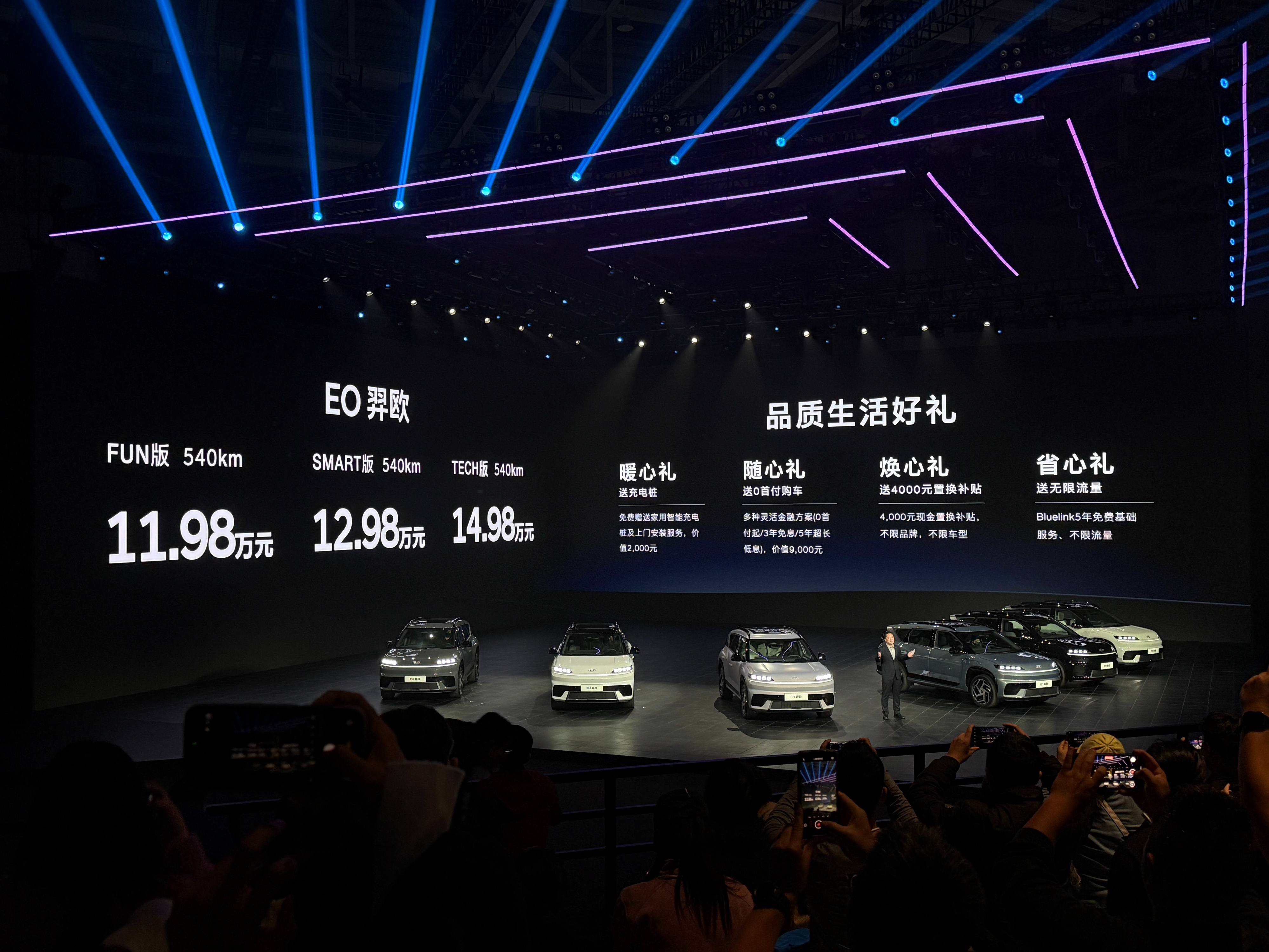 发布会上上市的EO羿欧则是这一战略的重要车型,它是首款基于现代E-GMP全球电动车专用平台而打造的车型,新车共推出3款车型,售价区间为11.98-14.98万元,定位紧凑型SUV。