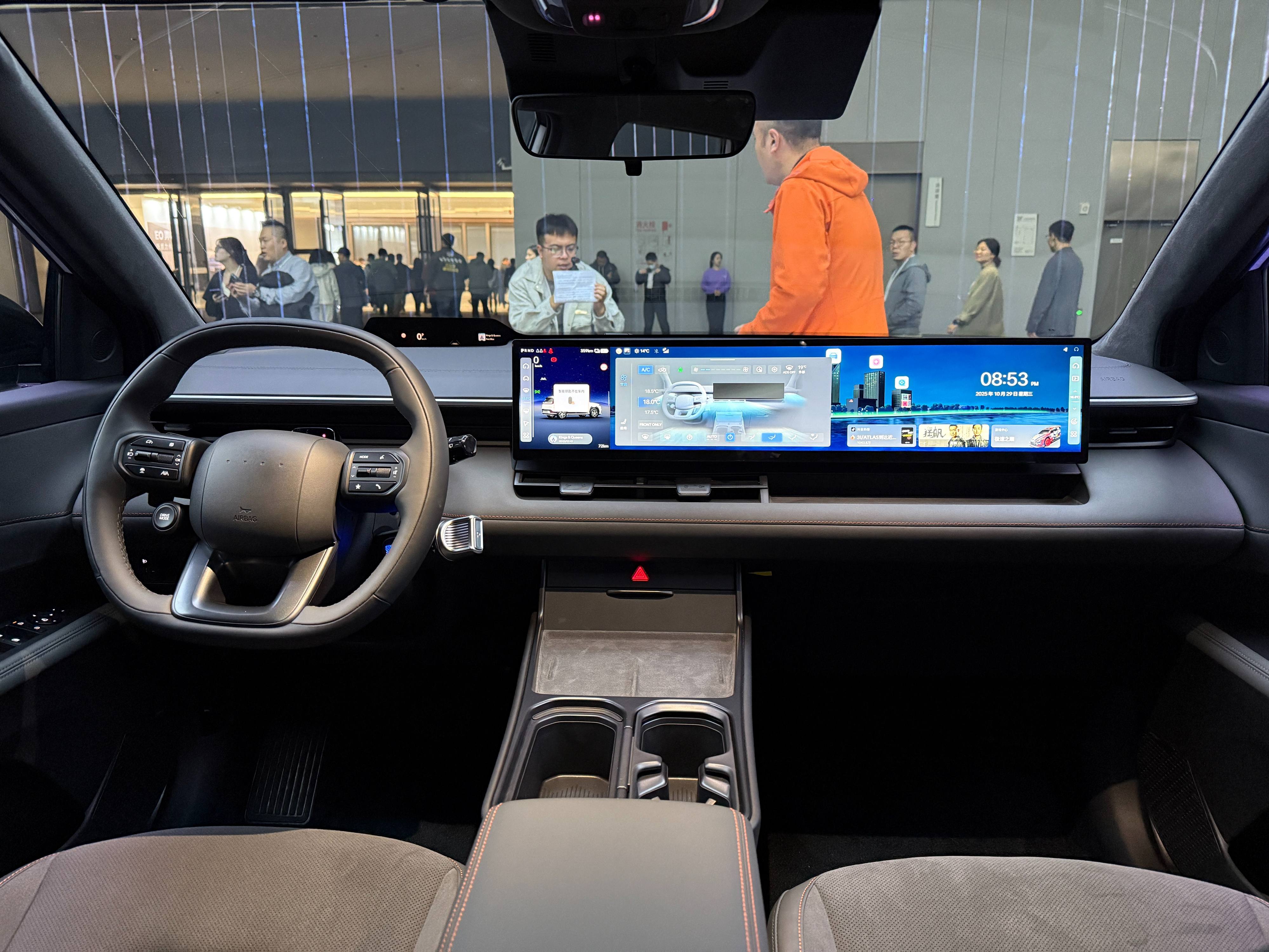 内饰方面,EO羿欧营造出了不错的科技氛围,阶梯式中控台的设计也比较有特色。中控屏幕使用的是27英寸屏幕,宽幕的设置兼顾了中控屏和副驾娱乐屏,支持4K分辨率。车机系统使用了高通骁龙8295芯片,响应速度较快,语音交互方面,EO羿欧支持4音区识别。另外EO羿欧还支持拍摄Car Vlog,通过车内和车外摄像头拍摄素材实时分享。在手机互联方面,支持CarPlay、CarLink。