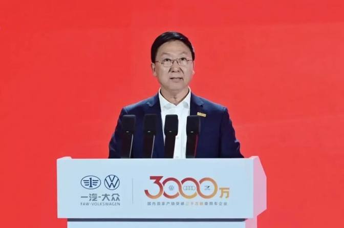 在下线仪式上,中国汽车工业协会常务副会长兼秘书长付炳锋致辞时表示,一汽-大众用3000万辆的成就证明开放合作是产业进步的必由之路。中国一汽董事长、党委书记邱现东致辞时也表示,一汽-大众第3000万辆整车下线具有重大的时代意义,充分彰显了中国对外开放的强大活力,有力诠释了我国超大规模市场的独特优势,生动反映了中德汽车产业合作的深厚潜力,鲜明体现了我国市场化、法治化、国际化的一流营商环境,必将为深化中欧经贸合作、推动全球特别是中国汽车产业高质量发展注入新动能。大众汽车集团(中国)董事长兼首席执行官贝瑞德表示,这无疑是一个意义非凡的里程碑时刻,不仅凝聚着团队协作的力量与彼此信赖的温度,更彰显了一汽与大众之间长期稳固的战略合作伙伴关系。