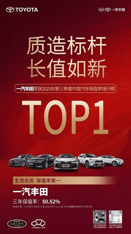 作为扎根天津22年的汽车企业,一汽丰田始终将天津视为故乡,通过实际行动助力地方发展,此次赞助天津马拉松正是对这片热土的深情回馈。这种地域情怀背后,是品牌对长期主义的坚定践行——在产品品质上,成立22年来始终坚守"品质保障"金字招牌,将严苛管理注入每个生产环节,实现不良产品"不流向用户、不流入下一个工序"的双重标准。旗下车型均具备高品质、高耐久性、高可靠性的QDR属性,在2025第三季度汽车保值率排行榜中,一汽丰田以50.52%的三年保值率荣膺主流合资品牌第一名,成为用户跨越时间周期的品质之选。