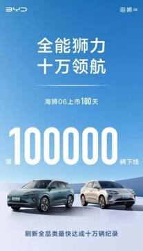 百天十万辆 比亚迪海狮06刷新全品类最快达成十万辆纪录