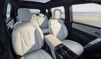 内饰采用环抱式座舱布局,44%膝部以上区域覆盖仿麂皮材质,触感细腻。第二排靠背支持28°调节,后备箱容积可在506L至1540L之间灵活调整,配合全车46处储物空间,满足多元出行需求。此外,还提供V2L外放电功能(2.2kW),全面满足家庭出行、露营、娱乐等多场景需求。