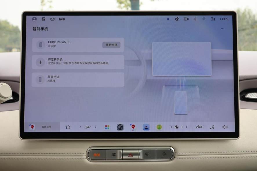 新车的“手车互联”兼容多品牌手机,用户靠近车辆即可解锁,坐下后车机便会同步手机。其中“摇一摇导航”堪称懒人福音,手机选好目的地后轻摇一下,路线直接同步到车机大屏。此外还支持手表控车、手机语音控车,甚至还能通过车机操作手机APP,日常用车的便利性有了大幅度的提升。