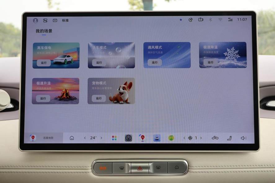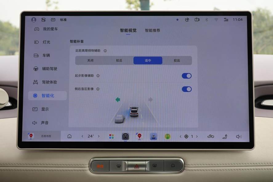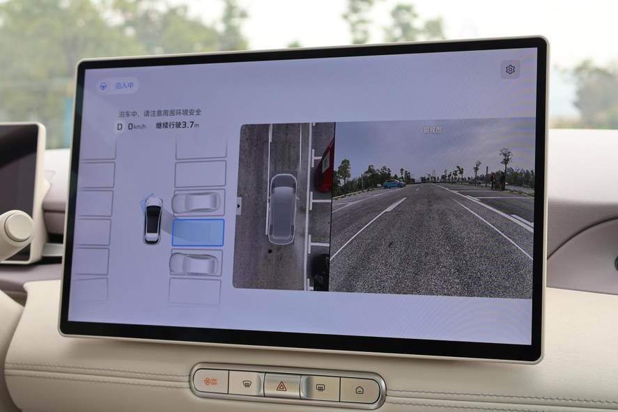 在智能化功能细节上,新车兼顾了实用性与场景化需求。智慧补盲新增了“夜间增强处理”,夜间行驶视线更清晰,提升驾驶安全。手机无线充电位配备遗忘提醒功能,停车开门时车机自动提示取走手机。同时支持手表遥控车辆直线前进后退,狭窄车位摆正车身后站在车外即可完成泊车,还支持手机语音呼唤车辆自动泊出。新增的一键隐私保护功能可以通过方向盘操作切换投屏至极简模式,保护车主的隐私。此外,宠物模式、通风模式、极速升/降温、离车保电、洗车模式等智能场景功能,也覆盖了日常用车的多种需求。