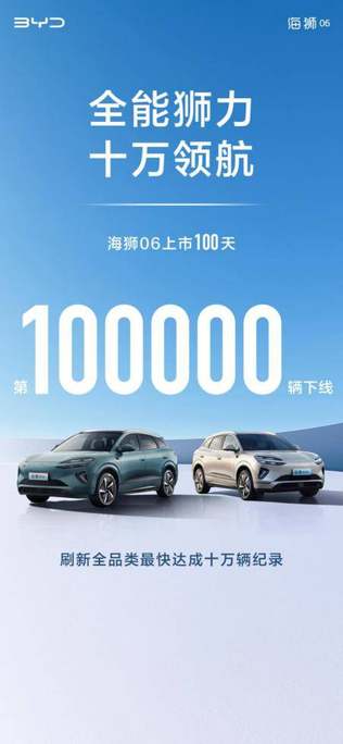 十万辆,是海狮06辉煌征程的第一个注脚,但绝非终点。作为比亚迪海洋网的核心战力,海狮06将继续承载更多消费者的信赖与期待破浪前行,以更具价值、更具魅力的新能源出行体验,持续推动中国智造向上突破,书写属于中国汽车的传奇新篇!