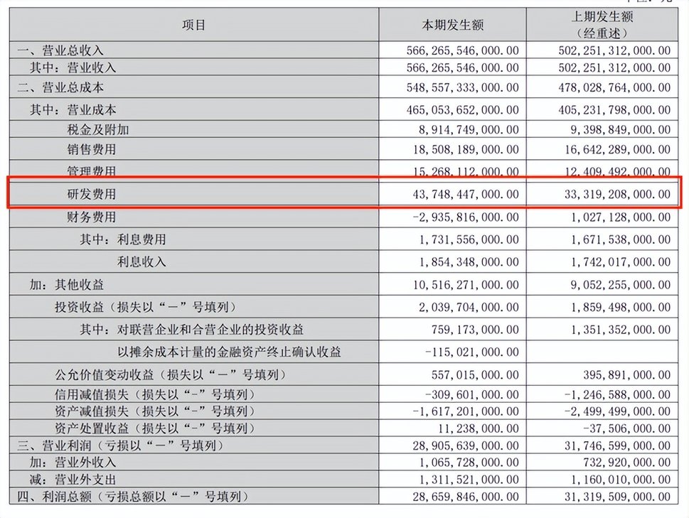 根据比亚迪公布的2025年度三季报数据显示,今年前三季度,比亚迪营业收入达到5662.7亿元,同比增长12.75%;而同期研发费用达到437.5亿元,占营业收入的比例约7.7%,位居行业前列,持续高企的研发投入则为比亚迪的技术创新提供了坚实的保障。
