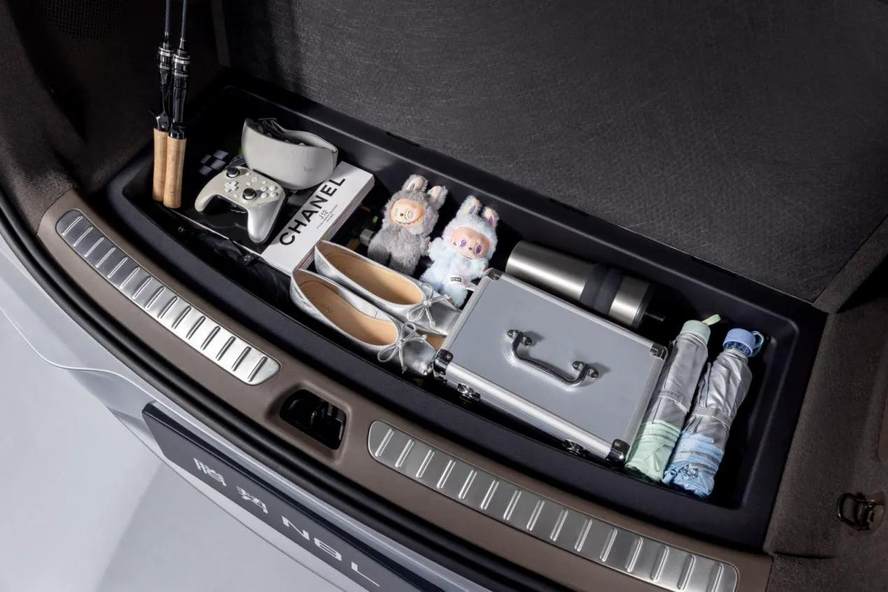 腾势N8L的车身尺寸达到5200×1999×1820mm,轴距3075mm,套内面积6.11㎡,人均超1㎡。车内垂直高度超1.3米,三排座椅均支持100mm前后滑移,第三排靠背最大调节角度达121°。即使六个1.8米高的成年人乘坐,也能拥有宽敞舒适的体验。同时,车内配备49处收纳空间与51L后备厢隐藏式储物盒,三排放倒后后备厢空间可拓展至1128L。