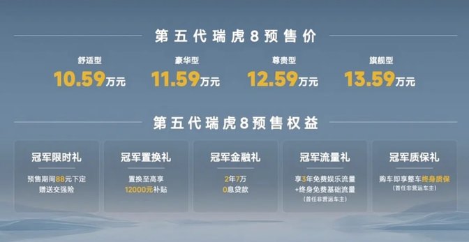 冠军基因+全域智能,第五代瑞虎8预售10.59万起