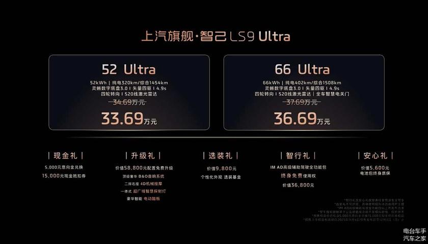 11月4日,上汽旗舰·智己LS9全球首发并正式开启预售。新车重磅首发两个超级增程版本,全系皆Ultra:52 Ultra版,预售权益价33.69万元;66 Ultra版,预售权益价36.69万元。作为汇聚上汽集团70年造车底蕴,集全球顶尖技术打造的旗舰之作,智己LS9以“两大跨代际硬核科技+两大智能时代最强创新”的绝对实力,一举颠覆30万级大六座SUV市场格局,正式宣告9系新王诞生!