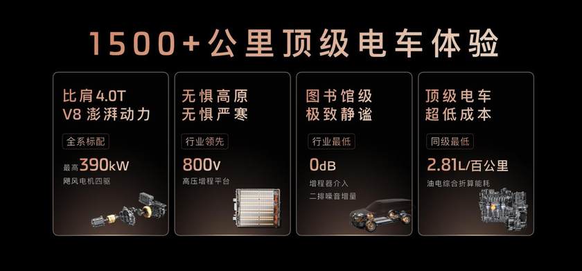 动力性能,是大六座SUV征服远方的起点。智己LS9全系标配800V架构,双电机矢量四驱系统带来比肩燃油4.0T V8发动机的澎湃动力:峰值功率390kW,峰值扭矩670N·m,全系4秒级零百加速。更重要的是,智己LS9搭载跨代际领先的“恒星超级增程”,彻底告别传统增程“亏电一条虫”的顽疾,让一台全尺寸大六座SUV,1500km全程都拥有超跑级的澎湃动力。即便在高原、极寒等极端环境下,其性能表现始终如一,赋予用户征服未知的绝对底气。