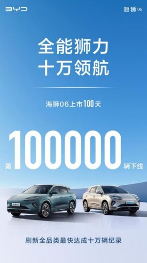 十万辆,是海狮06辉煌征程的第一个注脚,但绝非终点。作为比亚迪海洋网的核心战力,海狮06将继续承载更多消费者的信赖与期待破浪前行,以更具价值、更具魅力的新能源出行体验,持续推动中国智造向上突破,书写属于中国汽车的传奇新篇!