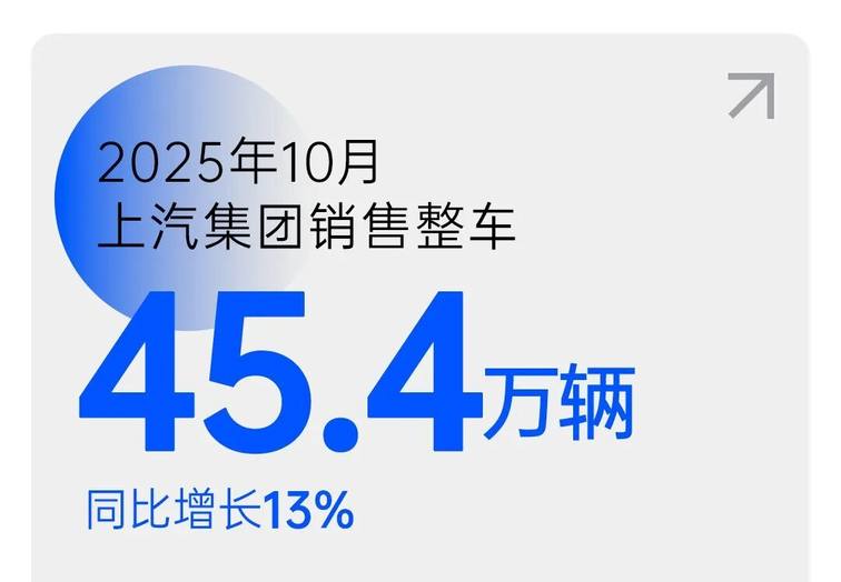 上汽集团在2025年10月的新能源汽车销量表现非常强劲,10月单月销量达20.7万辆, 同比增长31.6%,继9月后再创历史新高。1-10月累计销量129万辆,同比增长42.5%,成为集团增长的核心引擎。