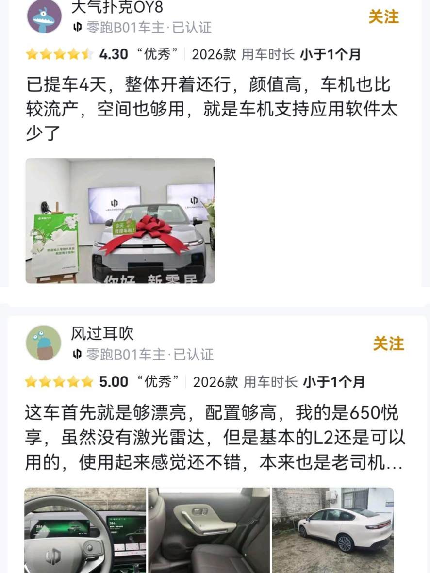 好了以上就是我近期的购车经历,希望对手握10万左右预算正在纠结买什么车的朋友有所帮助。最后总结一下:预算有限也能买到好车。不是纯电车太贵,而是过去我们没遇到像零跑B01这样“掀桌子”的选手。