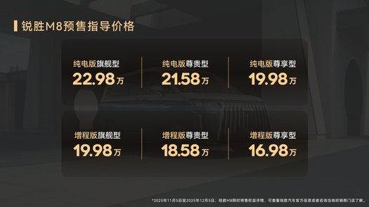 锐胜M8预售16.98万起 CLTC综合续航1420km