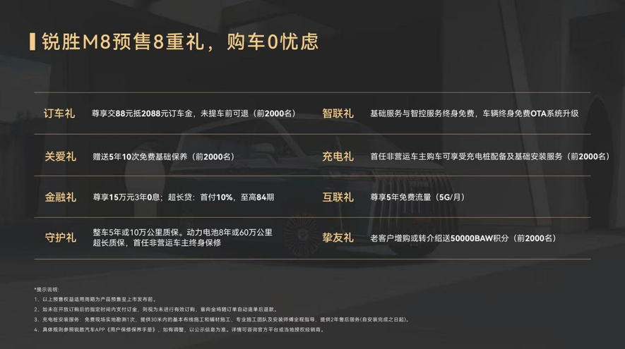 锐胜M8大型MPV正式预售 16.98万起,三排都是商务舱