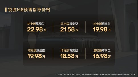锐胜M8大型MPV正式预售16.98万起,三排都是商务舱