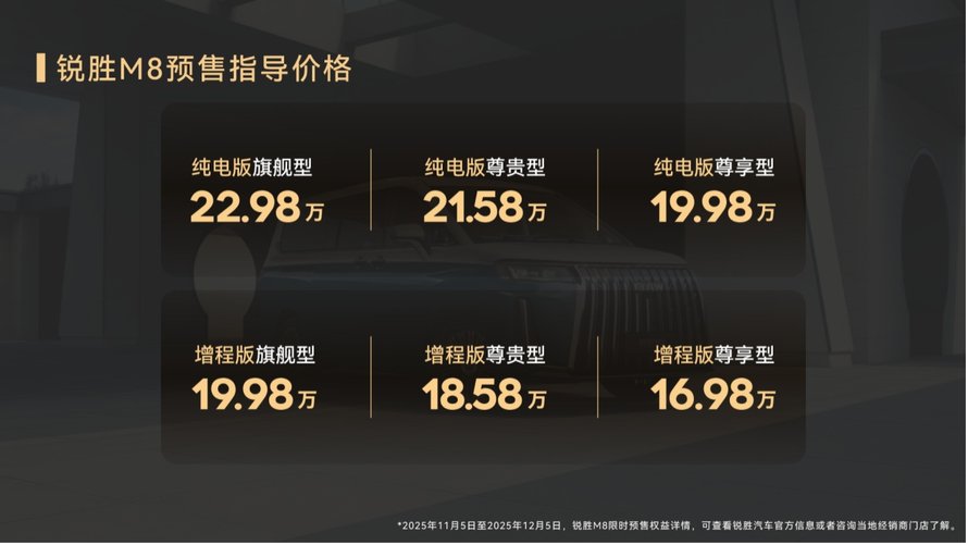 锐胜M8大型MPV正式预售 16.98万起,三排都是商务舱