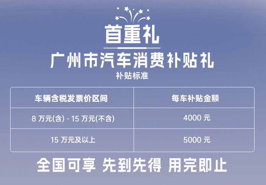一重礼:广州汽车消费补贴礼,至高5000元!