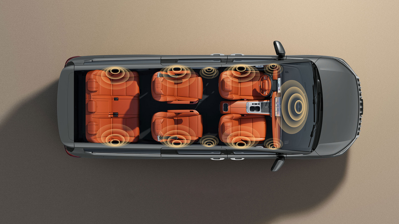 锐胜M8车长5317mm,轴距3200mm,拥有6180L超大容积,摒弃豪华MPV的浮夸设计,以实用为主。7座版采用2+2+3布局,二排座椅支持185mm宽度调节,中央通道可轻松通过儿童推车;三排坐垫高度350mm,180cm乘客坐进去头部空间还有一拳。