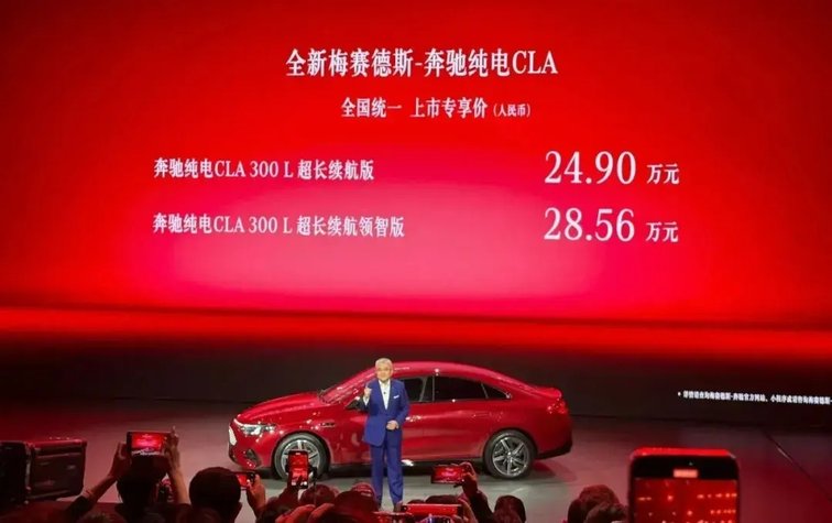 因此,有别于其他所有发布会,段建军在开场就把全新CLA纯电版的“底牌”亮了出来:奔驰纯电CLA 300 L超长续航版和超长续航领智版的市场售价分别为24.9万元和28.56万元,这在行业内可以说是首创,也体现了奔驰对于自身产品的绝对信心——不需要通过价格留住观众,也不需要通过增加发布会时长对产品进行尬吹。