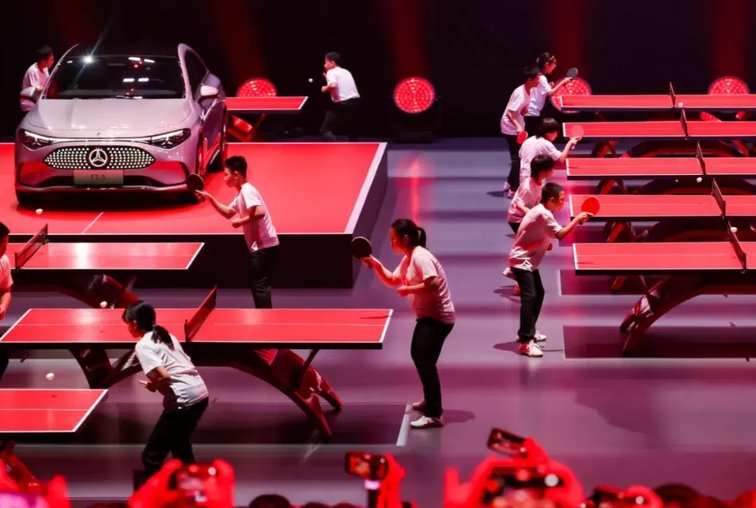 发布会结束后,场内的红色并未散去。除了看车的观众外,还有不少媒体和嘉宾打起了乒乓球……那一刻,三叉星徽的光芒,与乒乓球的跳动,继续讲述着属于奔驰和全新纯电CLA的故事。