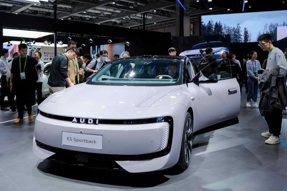 观众在进博会现场参观奥迪 E5 Sportback