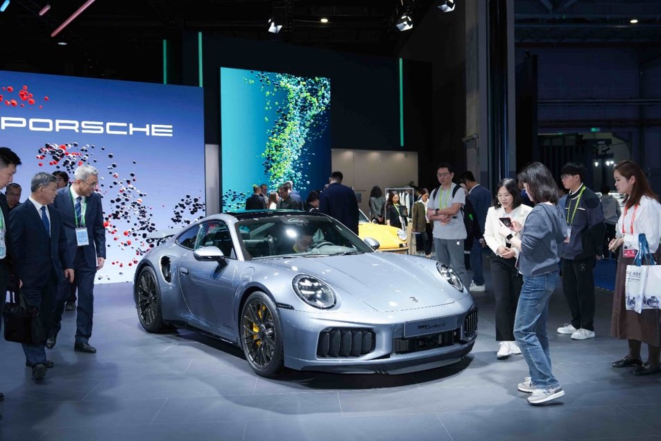 而在展台右侧,保时捷品牌以一场跨越时空的对话,生动演绎经典传承与锐意创新的深度融合。史上最强量产911——新款 911 Turbo S 在进博会迎来亚洲首秀,凭借创新T-Hybrid双电动涡轮增压系统、保时捷动态底盘控制系统(ehPDCC)以及523KW、800 Nm的强劲性能表现,彰显其旗舰性能跑车的标杆地位。而至今已诞生 60 周年的 911 S Targa也在一旁并肩而立,一同诠释着保时捷标杆车型911历久弥新的传奇魅力。