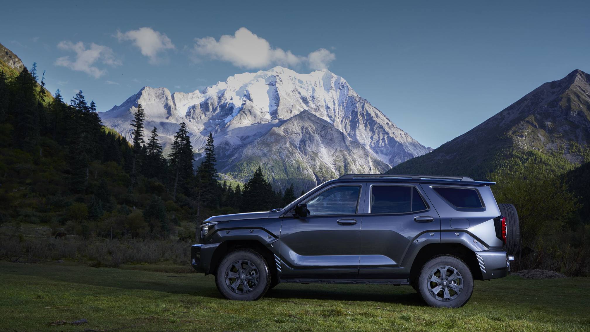 外观设计藏着“刚柔博弈”。标志性机甲范儿未减,平直延伸的新前包围取代了旧款的凌厉内收,更大尺寸的格栅让车头更显宽厚,少了份极致硬核,多了份从容气场。幻夜黑、敦煌紫等四色可选,外露式铆钉与简化外挂备胎相映成趣,既保越野辨识度,又添日常协调感。2850mm 轴距搭配 33° 接近角、800mm 涉水深度,短轴优势让越野通过性毫不妥协。