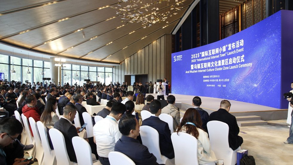 11月6日上午,2025“国际互联网小镇”发布活动暨乌镇互联网文化集聚区启动仪式在桐乡乌镇云舟宾客中心水天阁隆重举行。