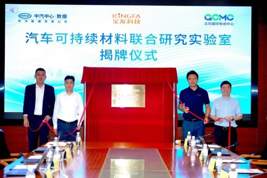 在此背景下,近日,浙江吉利汽车有限公司(以下简称“吉利汽车”)联合金发科技股份有限公司(以下简称“金发科技”)、中汽数据有限公司(以下简称“中汽数据”)揭牌成立“汽车可持续材料联合研究实验室”(以下简称“联合研究实验室”)。三方基于“优势互补、协同创新、产业赋能”原则,整合汽车产业数据服务、整车研发制造与高分子材料创新领域的核心资源,聚焦车用可持续材料技术突破、产业化落地与管理体系建设,为我国汽车产业绿色循环可持续发展提供关键技术支撑。