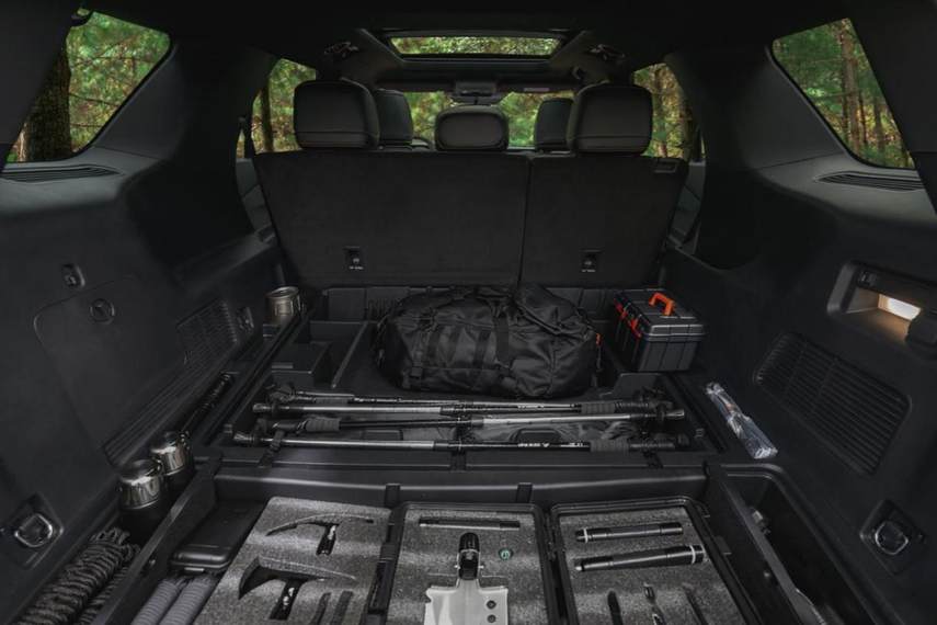 五座带来的空间可塑性是昆仑穿越版的差异点。后备厢常规容积1505L,二排放倒可拓展至2487L;新增置物板下隐藏储物近100L,后备厢细分储物格多达15个,最里层配有可移动挡板,能把滑雪板、自行车、露营箱等大件与零碎物品合理分区。