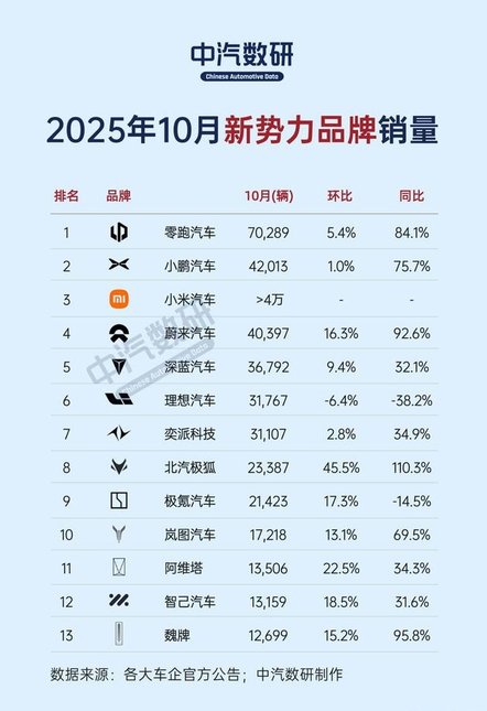 作为对比,蔚来、小鹏、零跑的销量都超过4万辆,实现同比高速增长,而大多数新势力品牌,在10月份都实现销量同比增长,主流品牌中,只有理想和极氪汽车销量同比下跌。按照这样的趋势,理想汽车即便下调销量目标,也是遥不可及。