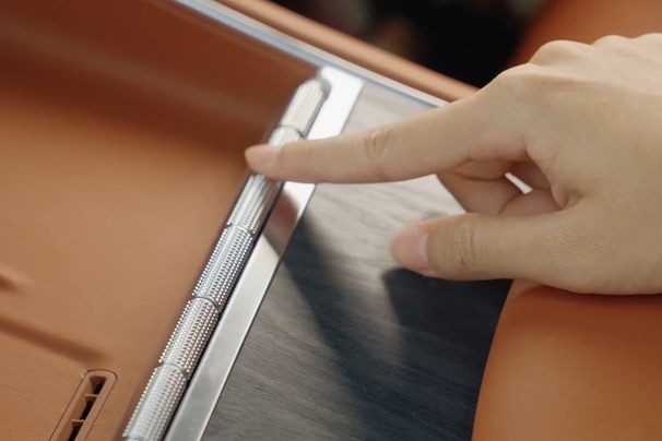 比如这款车可选的爱马仕橙配色,就很好地调动起了软性皮革材质的“温暖感”,通过与木纹饰板的搭配,给人以视觉温馨感的同时,又带来了温润的触摸质感。而且在这款车的内部,很多细节上的造型填充,让这套豪华内饰看起来“贵气”而不“俗气”。