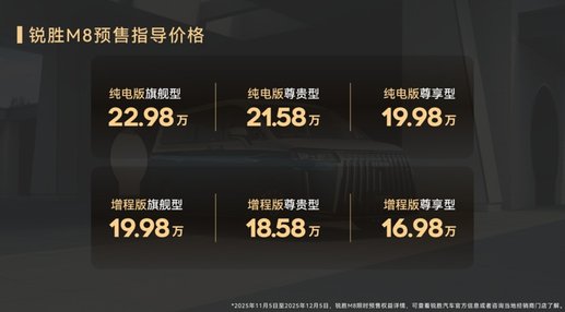 大型MPV锐胜M8 预售16.98万起,三排都是商务舱