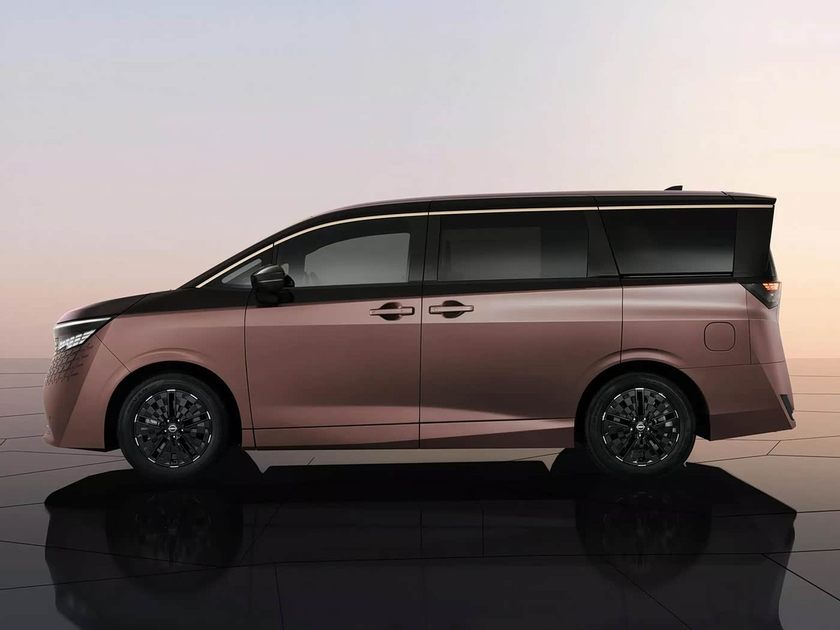 车身侧面,双拼色车漆让全新日产Elgrand看上去更加潮流,车身运用大量锐利的线条勾勒,展现出不错的力量感。值得一提的是,那犹如棋盘格的轮毂造型、独特的D柱设计,以及车窗上方金色饰线的加入,不仅削弱了传统MPV的商务气息,还增添了辨识度。此外,全新日产Elgrand后排使用了双电动侧滑门。