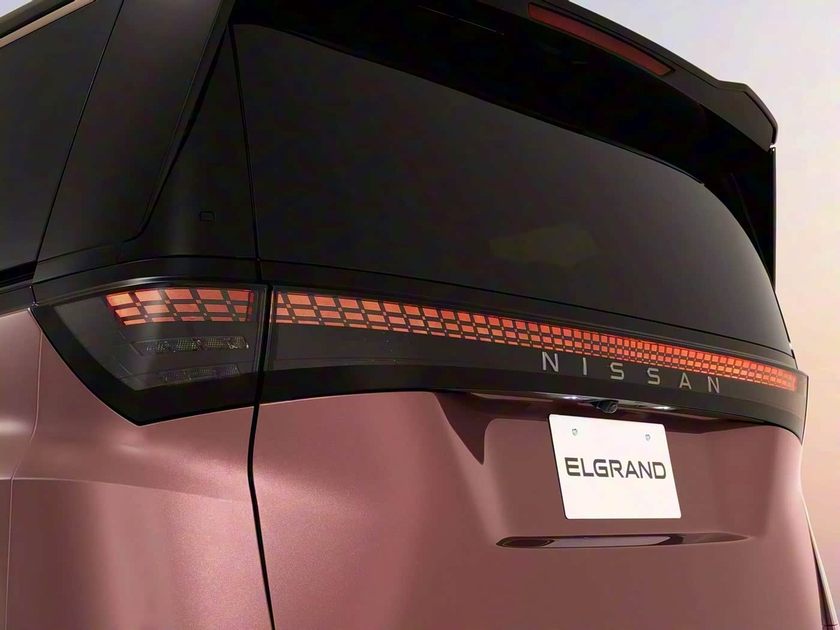 车尾部分,全新日产Elgrand配备大尺寸车顶扰流板和高位刹车灯,贯穿式尾灯的内部光源与前脸风格相似,进一步提升时尚感。