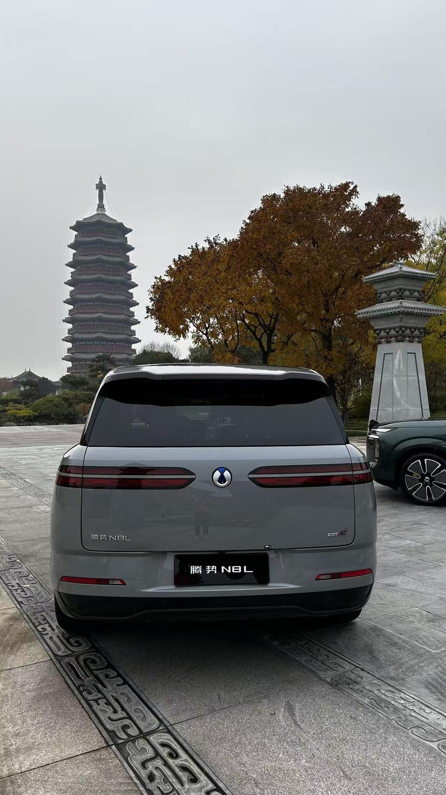 此刻,停驻于此的腾势N8L,并非闯入者,而是这成熟画卷中浑然天成的一笔。它流线型的车身,在秋日斜照下折射出内敛而深邃的光泽,恰如那历经风霜的银杏叶,于静默中彰显着不凡的质地与气度。