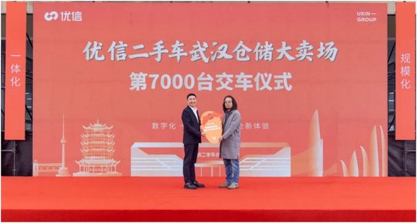 自今年2月试营业以来,优信二手车武汉仓储大卖场销量逐月增加,累计销售车辆7000台,已成为武汉及周边二手车消费者的重要购车目的地。开业当天,优信集团创始人、董事长兼首席执行官戴琨向第7000台车辆的购车客户宋先生交付车钥匙。“在这里买车价格实惠,整个流程方便快捷,品质也有保障。”宋先生说,他选购的是一辆岚图梦想家2022款。