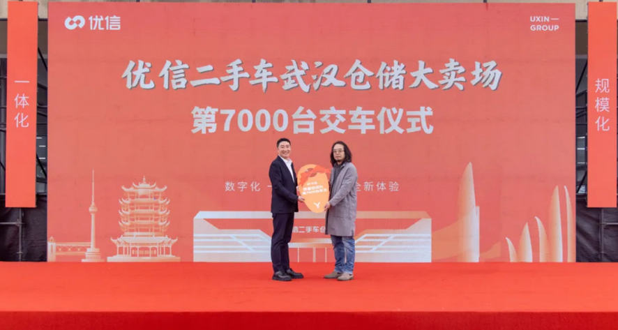 自今年2月试营业以来,优信二手车武汉仓储大卖场销量逐月增加,累计销售车辆7000台,已成为武汉及周边二手车消费者的重要购车目的地。开业当天,优信集团创始人、董事长兼首席执行官戴琨向第7000台车辆的购车客户宋先生交付车钥匙。“在这里买车价格实惠,整个流程方便快捷,品质也有保障。”宋先生说,他选购的是一辆岚图梦想家2022款。