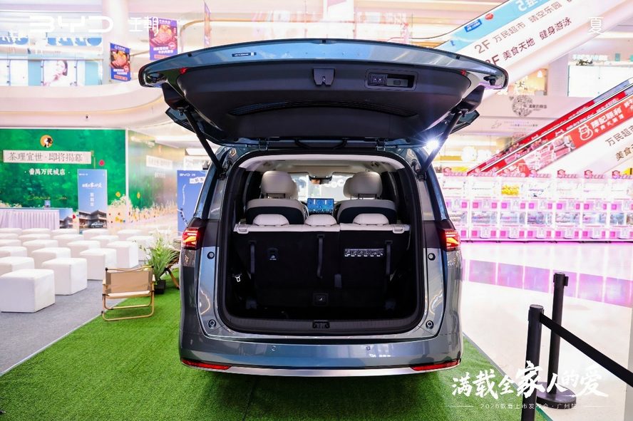 2026款夏有着超 5 米的车长、3米多的轴距,空间方面完全是头等舱的体验。副驾可以一键变身躺椅,4向电动调节、通风加热、按摩等功能,妥妥的“女王座”。第二排亦有按摩躺椅,通风、加热、按摩、腿托一应俱全,还能语音调节。第三排更是同级标杆,支持翻转折叠、前后移动,甚至可一键隐藏在地台下方,腾出 2036L 超大后备箱,轻松满足全家的出行需求与爱好。