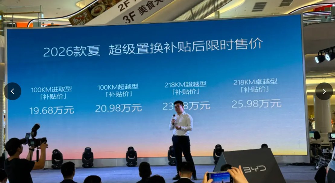补贴后19.68万元起,闭眼入不亏!比亚迪2026款夏广州区域上市