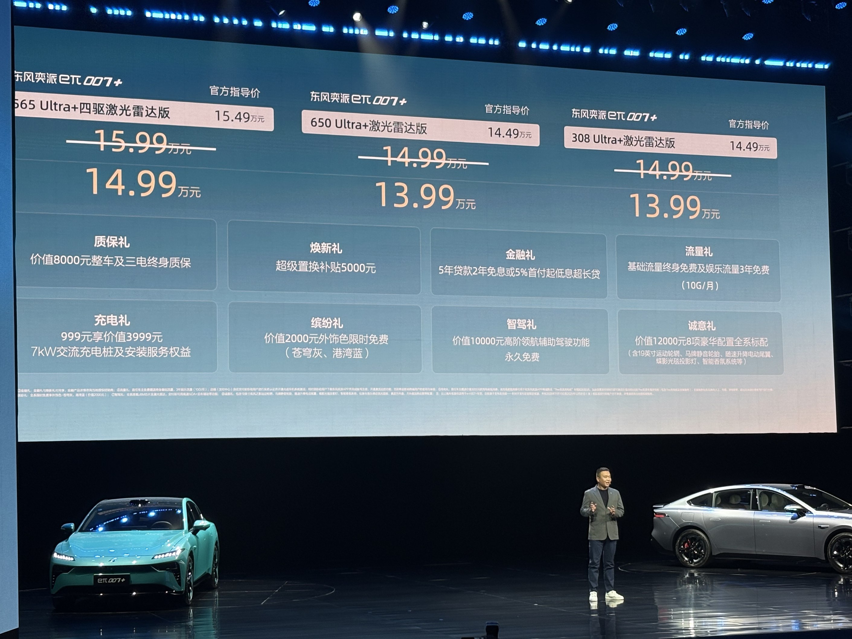 10日晚,藉东风奕派品牌两周岁之际,eπ007+也正式上市了。新车售价13.99~14.99万元间,提供纯电和增程两种动力选择。其中纯电版CLTC最高续航650km,配备4c快充,30%-80%电量补能仅需12分钟;增程版则是搭载超感增程2.0系统,纯电续航308km,综合续航1308km。此外,eπ007+还提供了该级别车型为数不多的四驱版本,零百加速直接进入3秒俱乐部。