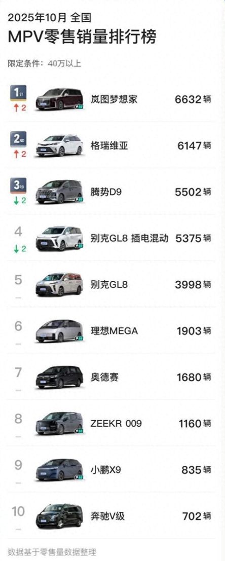 岚图梦想家10月再夺销冠,稳坐高端MPV头把交椅