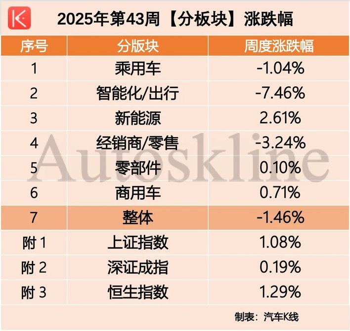 11月第一交易周,《汽车K线》统计在册的116只汽车股,股价平均下跌1.46%,跑输大盘;翻红者数量仅约四成,涨幅超过10%的上市公司更是凤毛麟角。