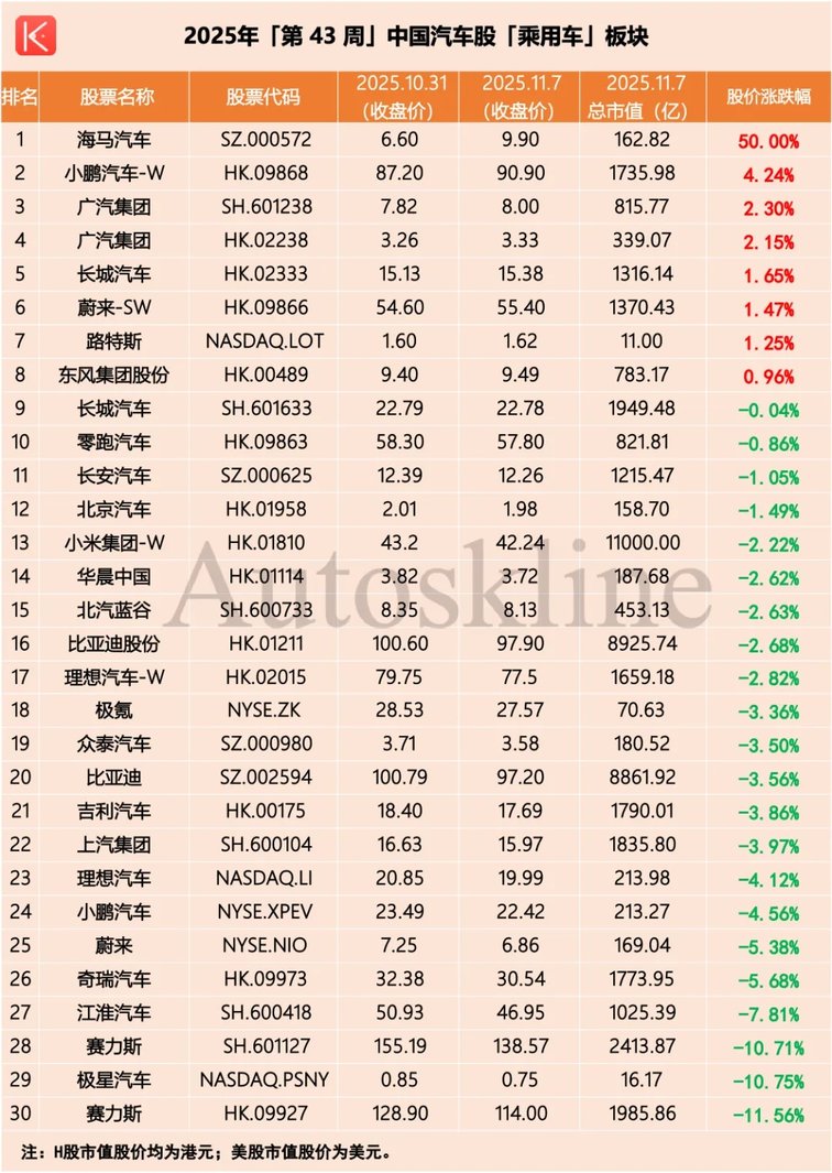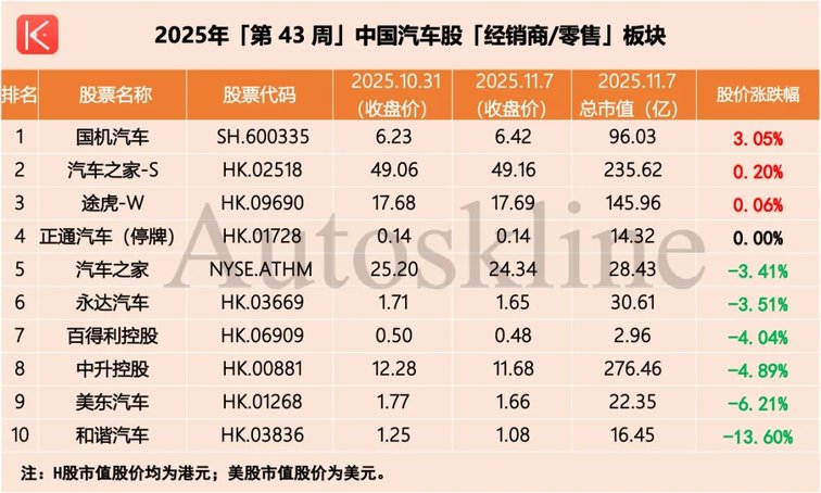 此外,经销商和谐汽车、黑芝麻智能、禾赛美股和极星汽车也跌幅较高。