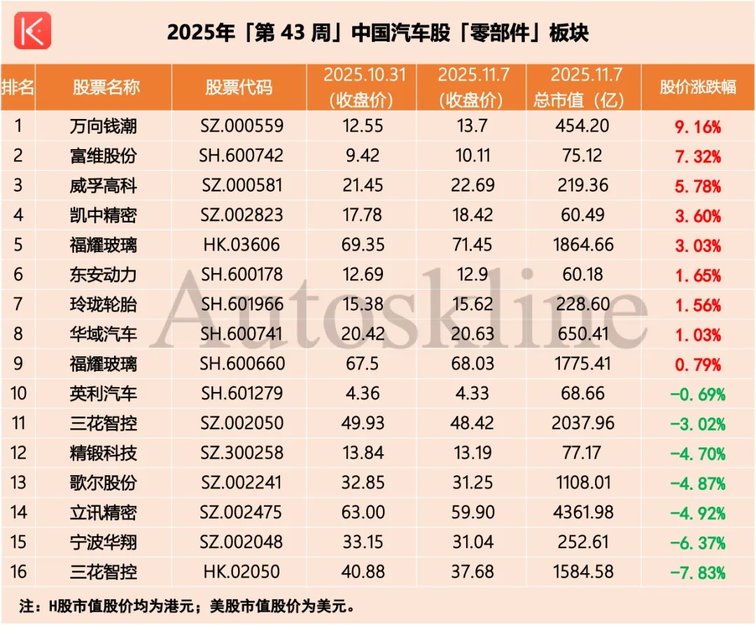 除上述上市公司外,涨幅TOP10中还有天赐材料、万向钱潮、富维股份等入围。
